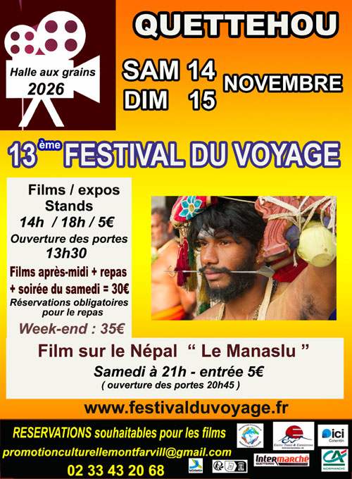 13° Festival du Voyage 14 et 15 novembre 2026 à QUETTEHOU ( 50630 ) Entrez dans le site ICI