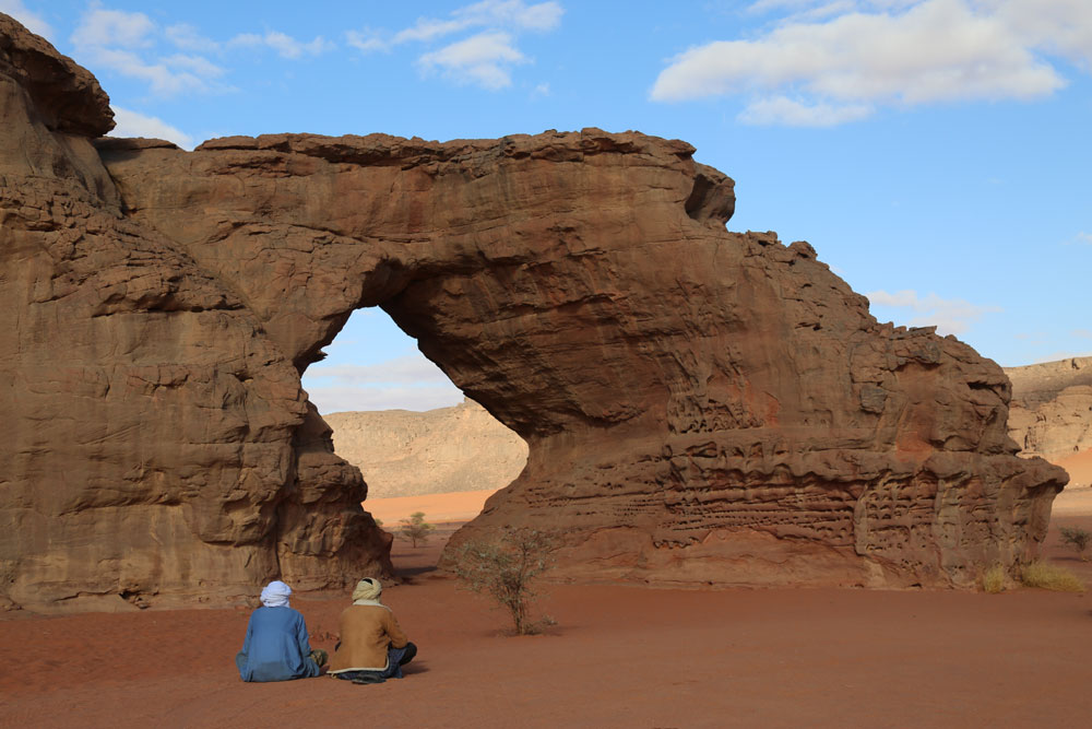 Des dunes jaunes et rouges, des cortèges de pics déchiquetés, quelques arbustes qui se cramponnent à l'existence, d'innombrables messages laissés sous des abris rocheux par des artistes de la préhistoire. Nous sommes au cur de la Tadrart, un univers d'une bouleversante beauté.. |